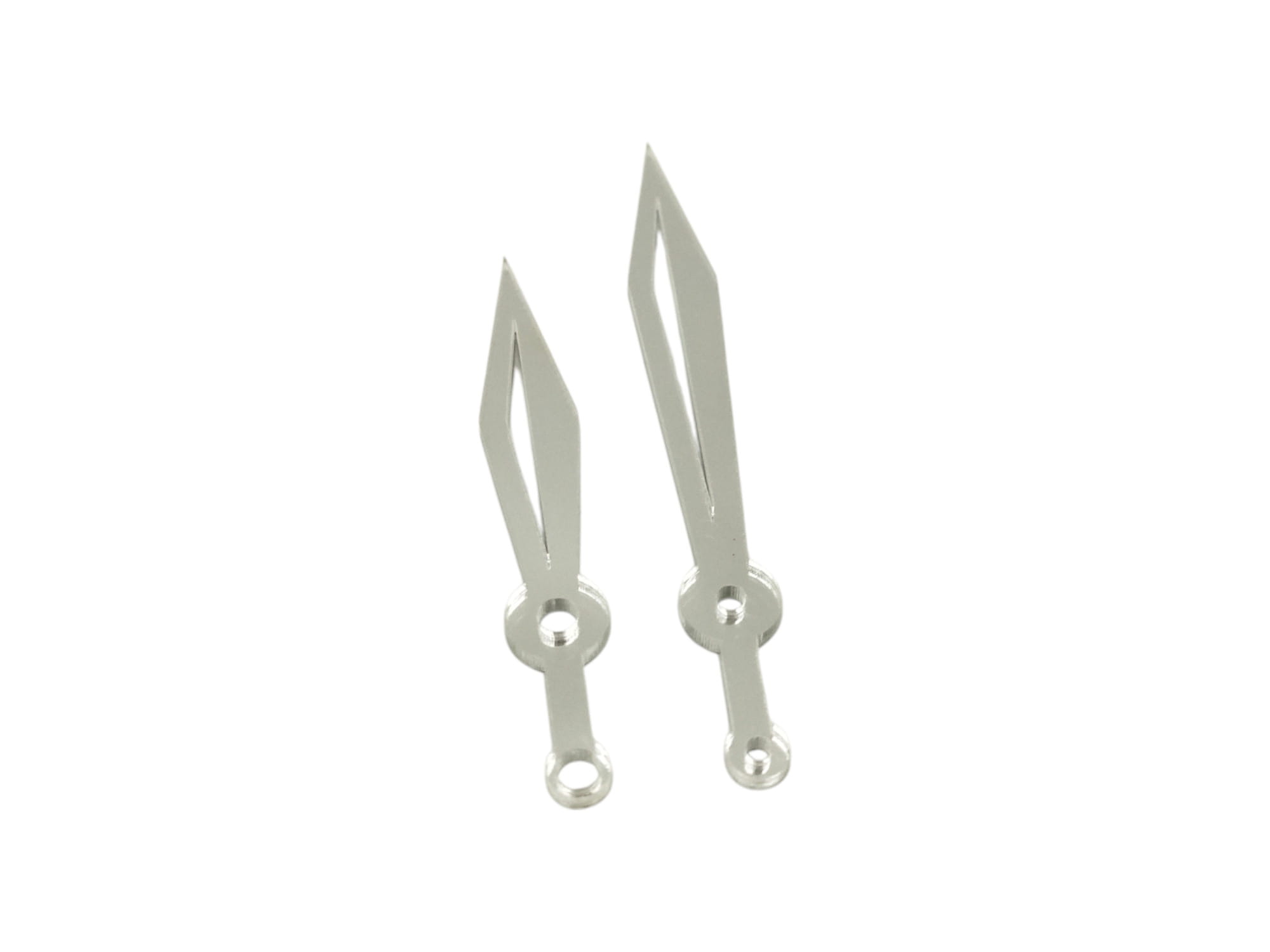 Srebrne lustrzane wskazówki do zegara (ver.7) - komplet 2 sztuk z zaślepką sekundnika