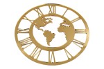 Tarcza zegara ze złotego lustra z cyframi rzymskimi i mapą świata - cyferblat