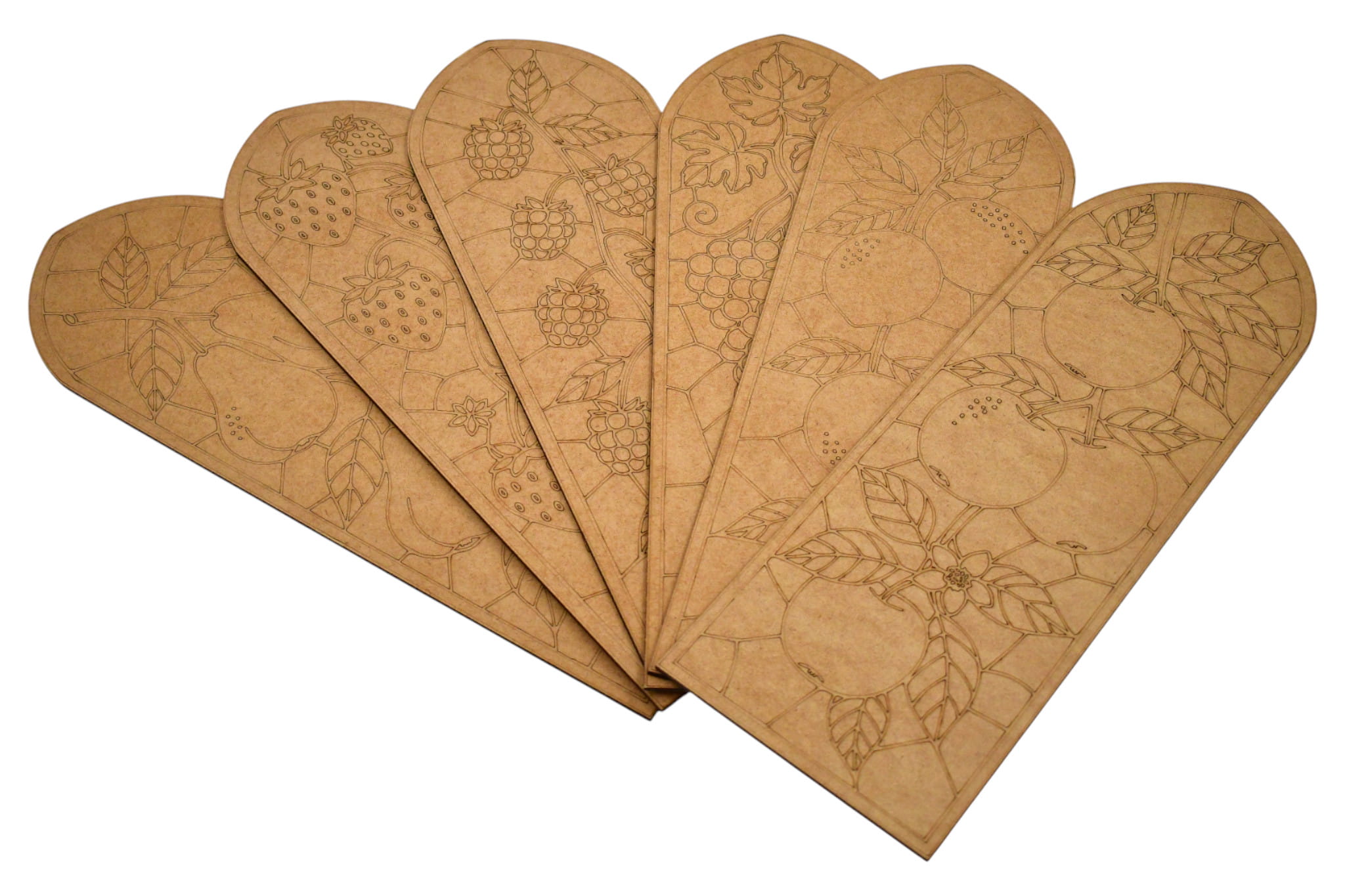 Zestaw 6 sztuk witraży z MDF - owocowe wzory (40x13,5 cm)